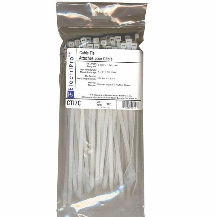 ElectriPro 4″ White Nylon Indoor Cable Ties (100 Units), Model EPOCTI4C
