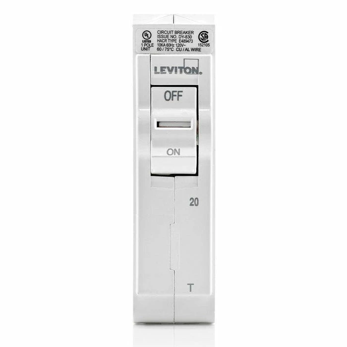 Leviton 1-Pole 20A 120V Standard Thermal Magnetic Breaker, Model LB120-T