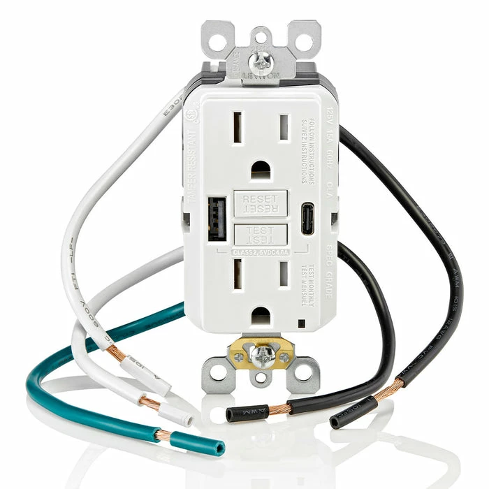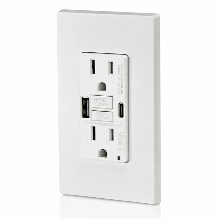 Leviton 15A GFCI Combination Receptacle With Type A/C USB Charger In White, Model GUAC1-W*
