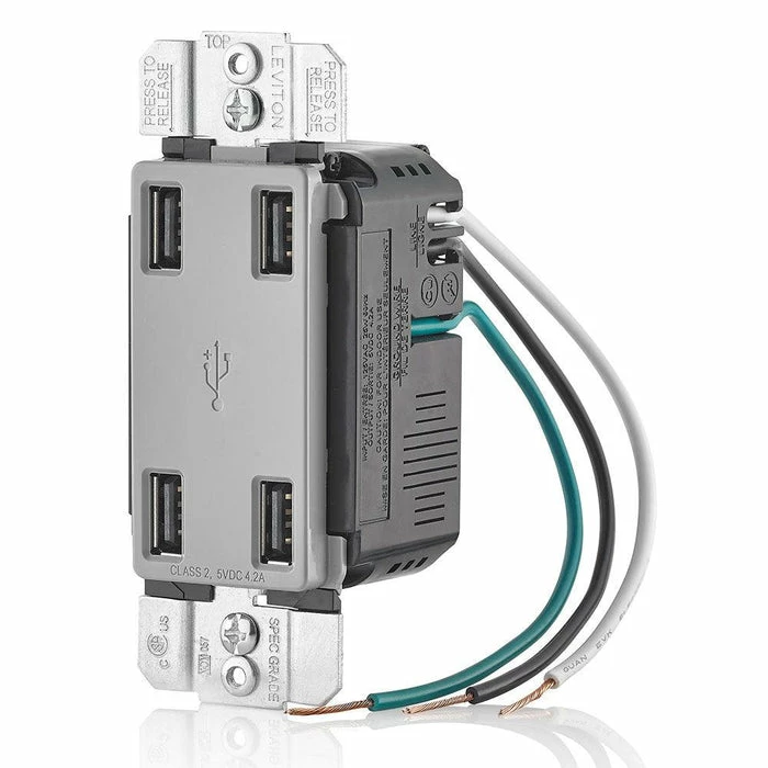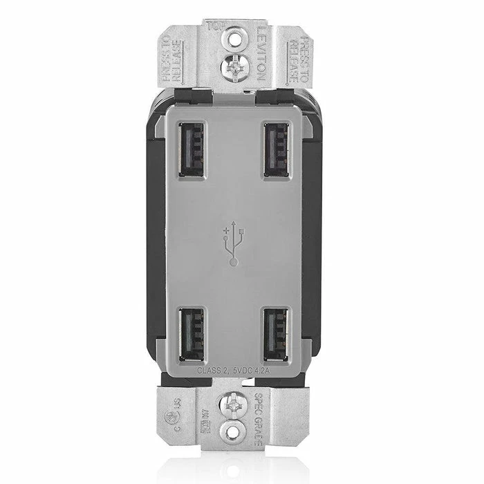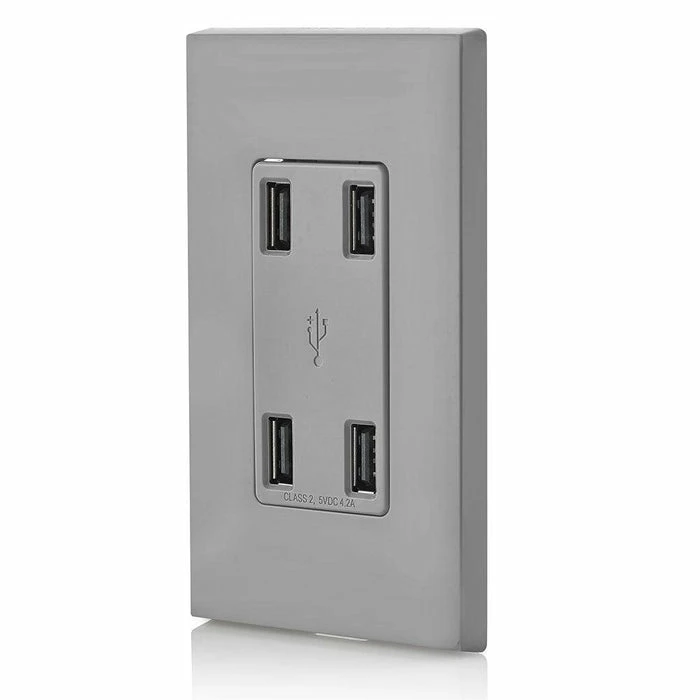 Leviton 4-Port Type-A USB Wall Outlet Charger (Grey), Model USB4P-G*