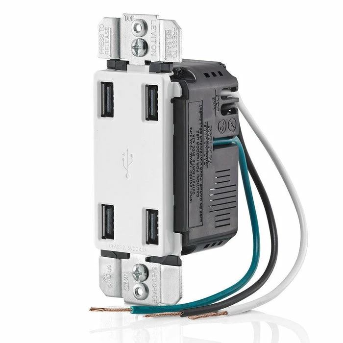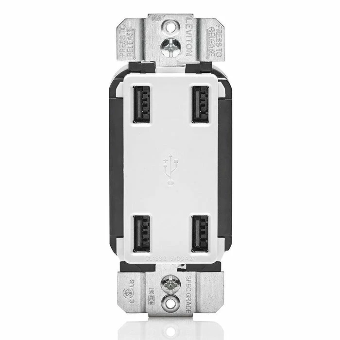 Leviton 4-Port Type-A USB Wall Outlet Charger (White), Model USB4P-W