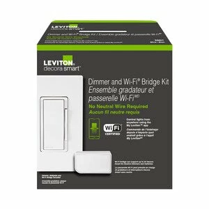 Leviton Decora Smart No-Neutral Kit Dimmer & Wi-Fi Bridge Retrofit For Homes Without Neutral Wire, In White, Model DNKIT-W