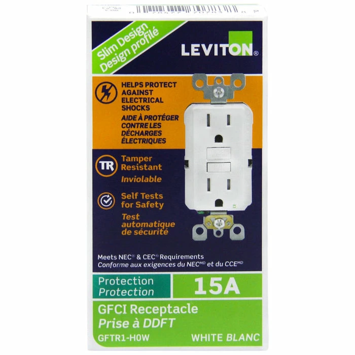 Leviton GFCI Receptacle, Slim Design, Tamper Resistant, Model GFTR1762