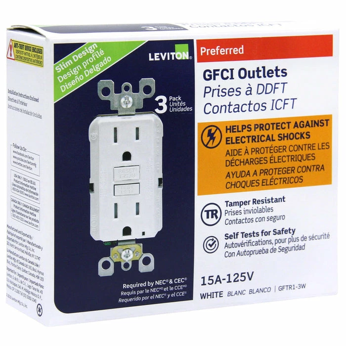 Leviton GFCI Receptacle Tamper Resistant, Slim Design (Pack Of 3), Model GFTR1M92