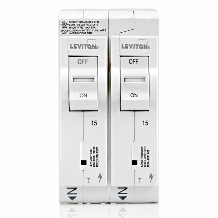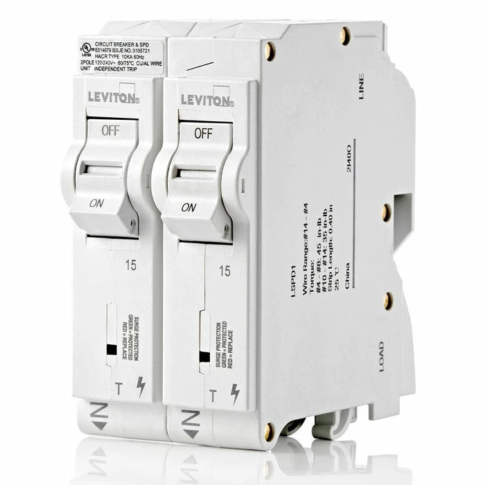 Leviton Surge Protective Device And (2) 1-Pole 15A Thermal Magnetic Circuit Breaker, LSPD1-T