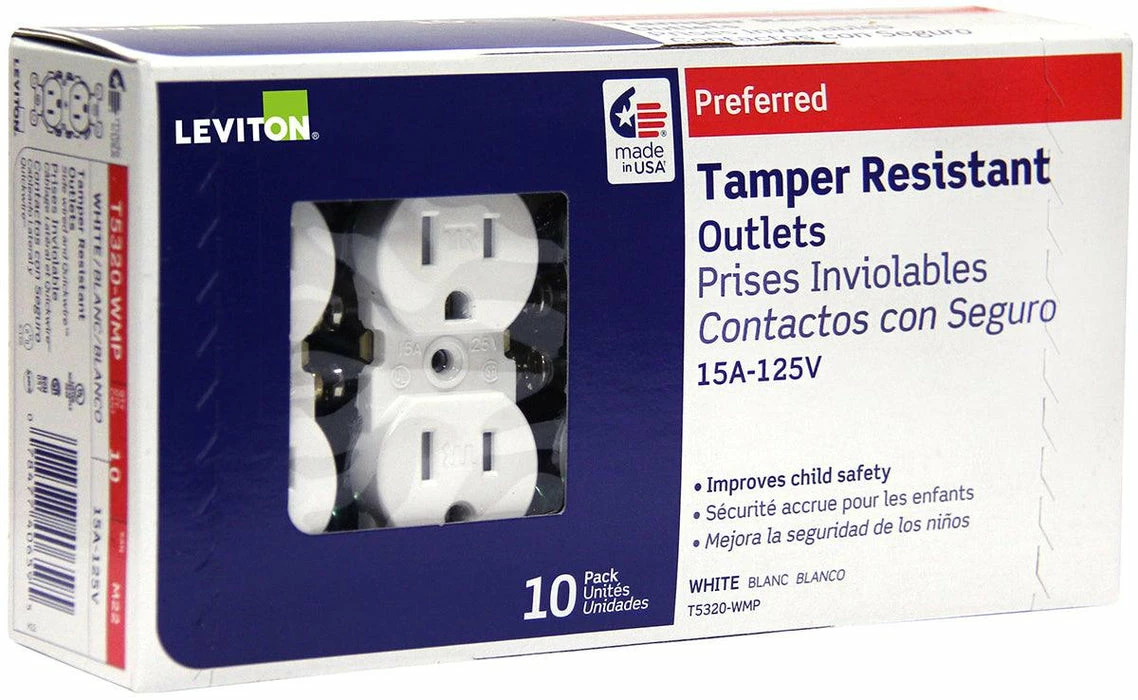 Leviton Tamper Resistant Duplex Receptacle – White (Pack Of 10), Model T5320-WMP