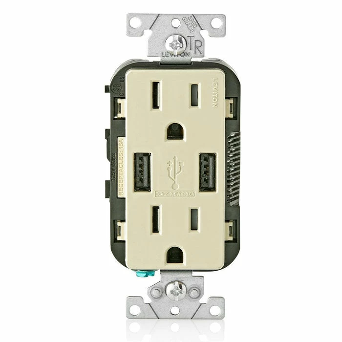 Leviton Type-A Dual USB Charger With 15A Tamper-Resistant Receptacle (Ivory) Model T5632*