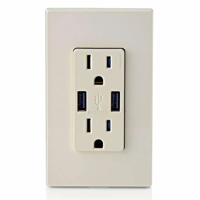 Leviton Type-A Dual USB Charger With 15A Tamper-Resistant Receptacle (Light Almond) Model T5632*