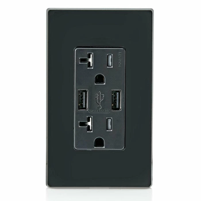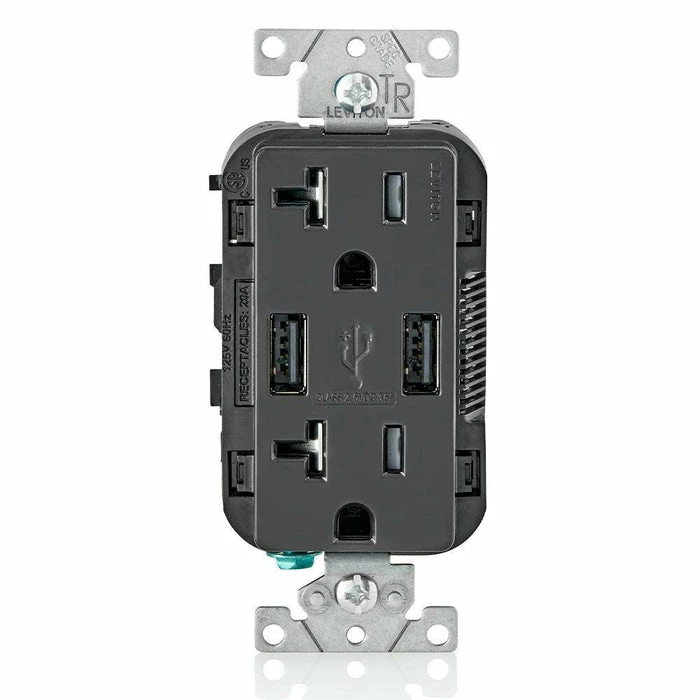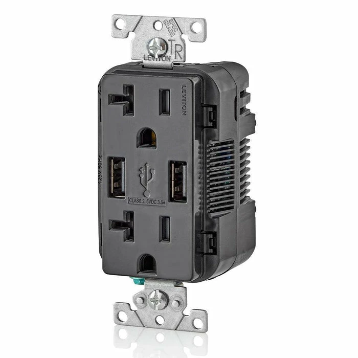 Leviton Type-A Dual USB Charger With 20A Tamper-Resistant Receptacle (Black) Model T5832