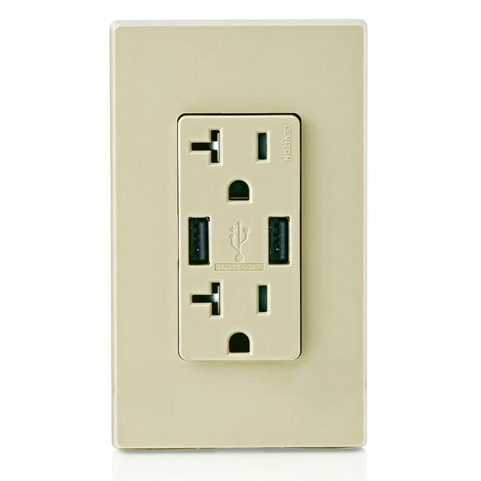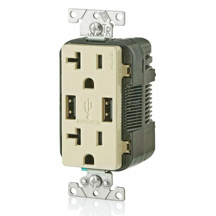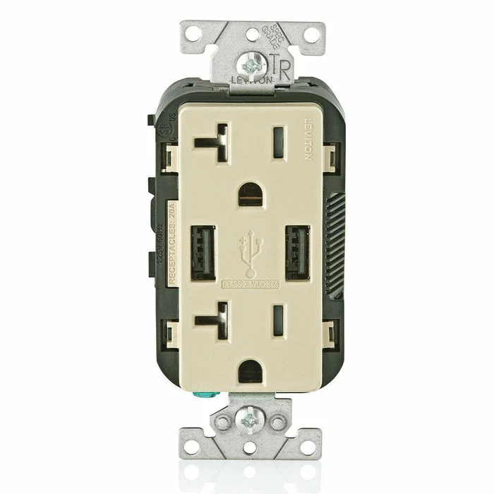 Leviton Type-A Dual USB Charger With 20A Tamper-Resistant Receptacle (Ivory) Model T5832*