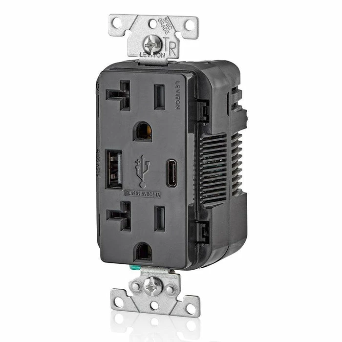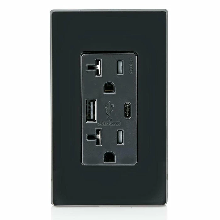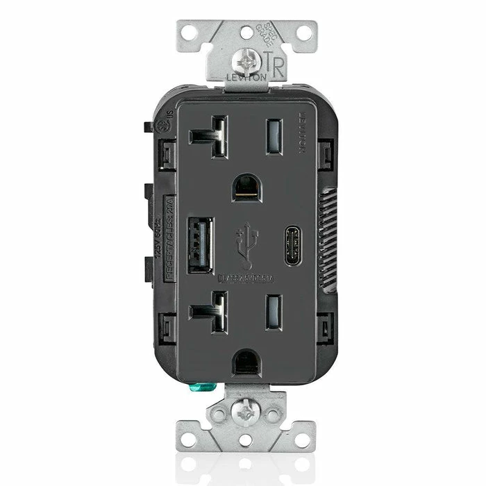 Leviton Type-A & Type-C USB Charger With 20A Tamper-Resistant Receptacle (Black) Model T5833