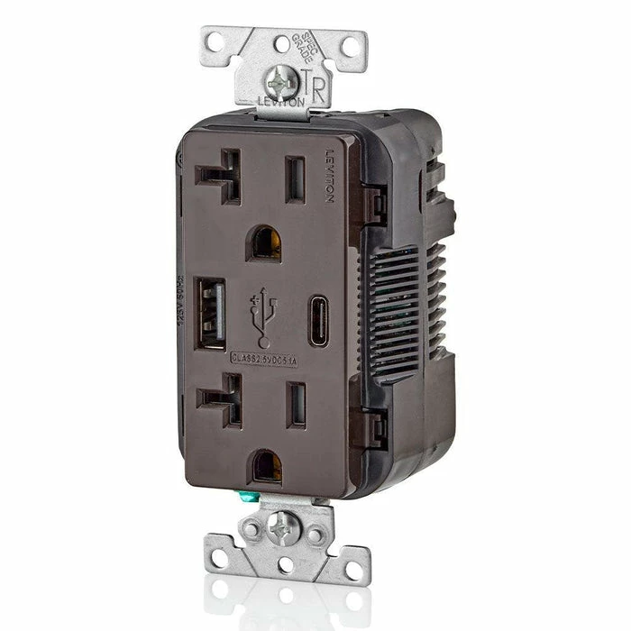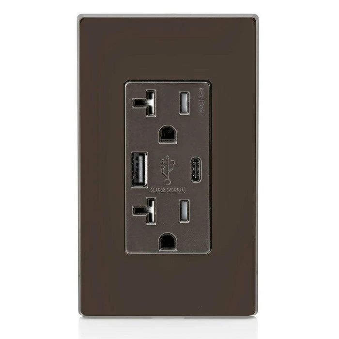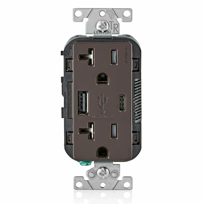 Leviton Type-A & Type-C USB Charger With 20A Tamper-Resistant Receptacle (Brown) Model T5833