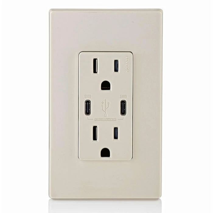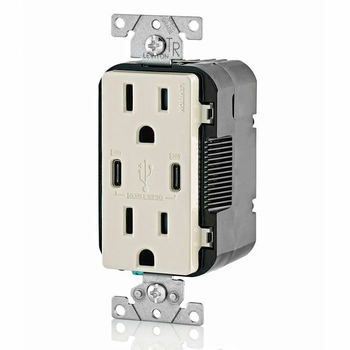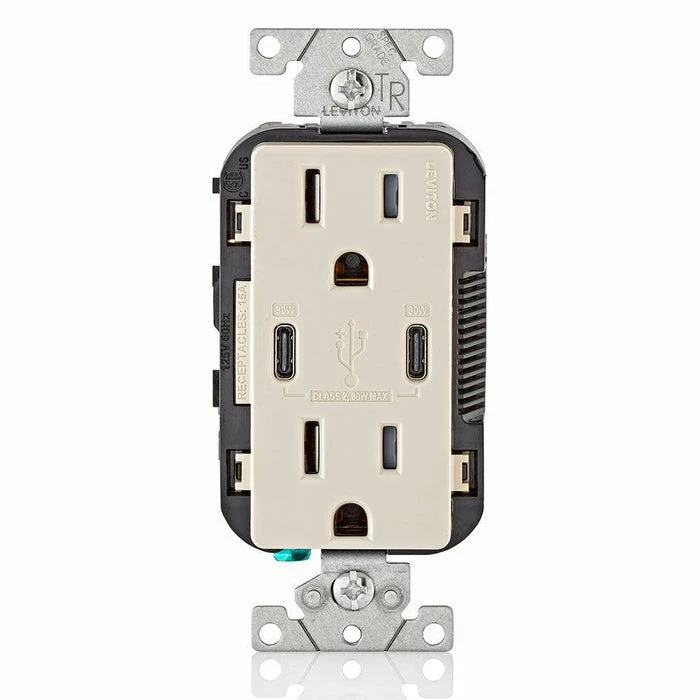 Leviton Type-C Dual USB Charger With 15A Tamper-Resistant Receptacle (Light Almond) Model T5635*
