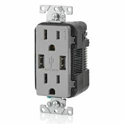 Leviton Type-A Dual USB Charger With 15A Tamper-Resistant Receptacle (Grey) Model T5632