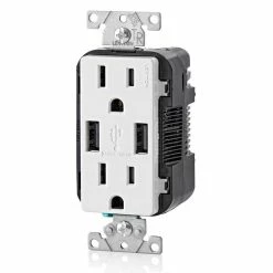 Leviton Type-A Dual USB Charger With 15A Tamper-Resistant Receptacle (White) Model T5632