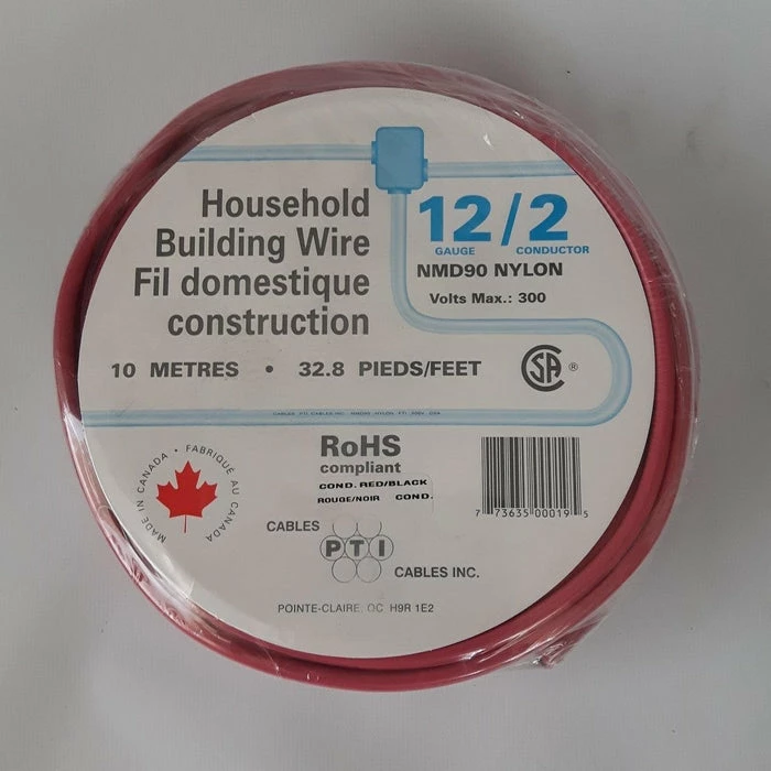 PTI Cables Household Building Wire NMD90, 12/2 10m Red
