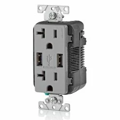 Leviton Type-A Dual USB Charger With 15A Tamper-Resistant Receptacle (Grey) Model T5632