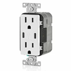 Leviton Type-C Dual USB Charger With 15A Tamper-Resistant Receptacle (White) Model T5635